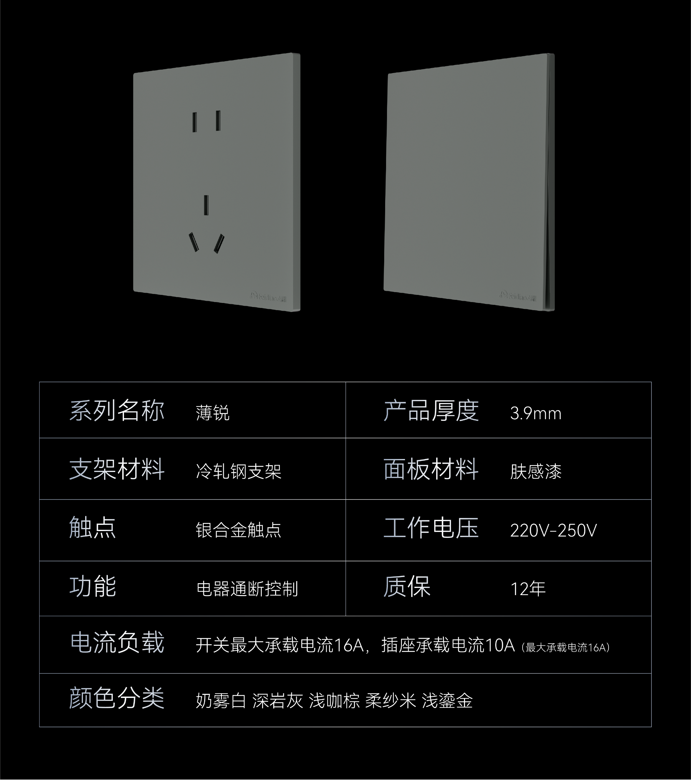 kaiyun开云(中国) 开关插座 开关插座 薄锐超薄·Air系列