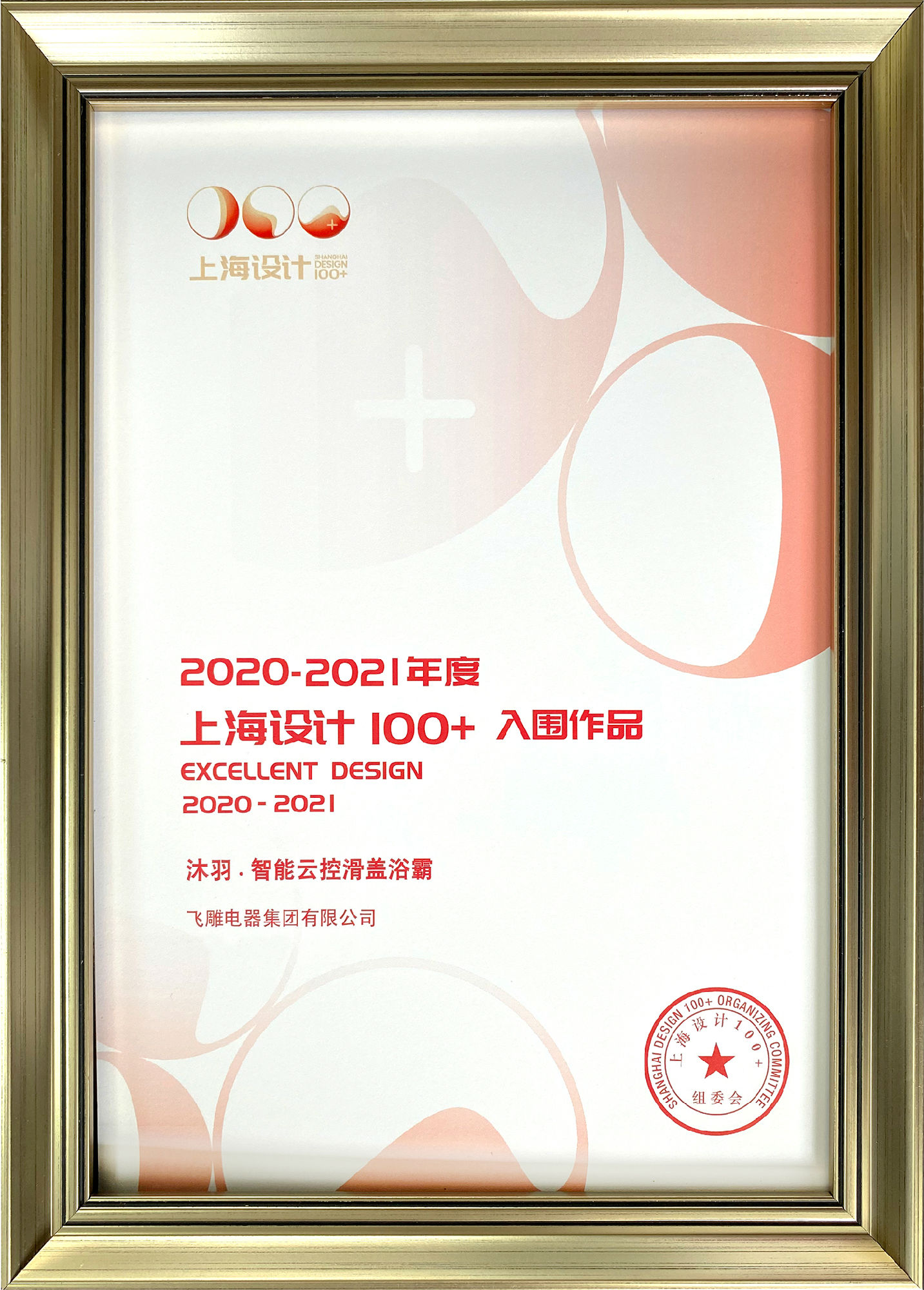 恭喜飞雕沐浴·智能云控滑盖浴霸入围“上海设计100+”!