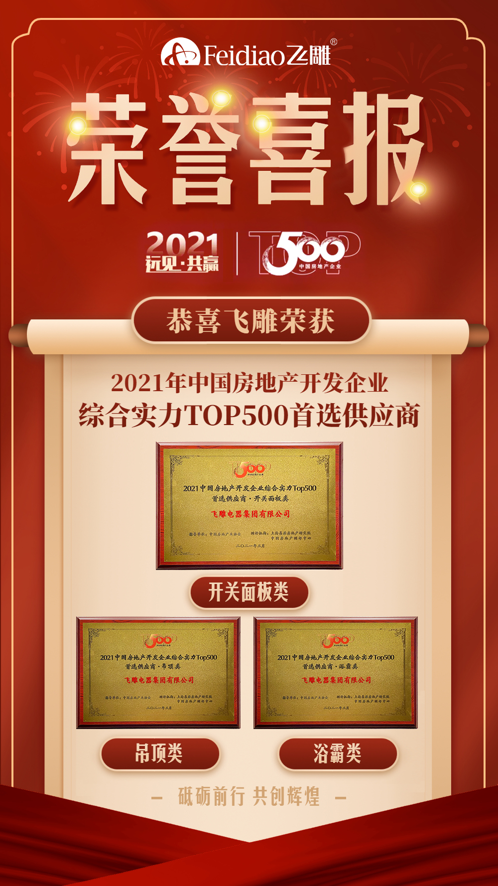 祝贺:飞雕荣获2021年中国房地产开发企业综合实力TOP500 首选供应商!